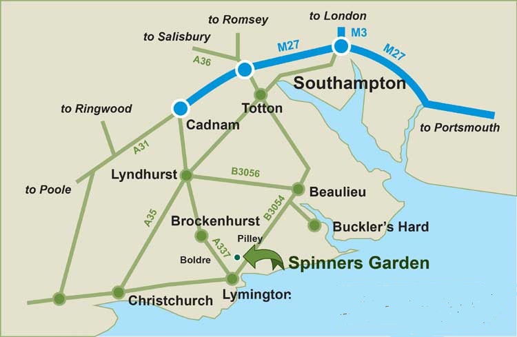 Getting to Spinners Garden & Nursery (NB: maps are not to scale)